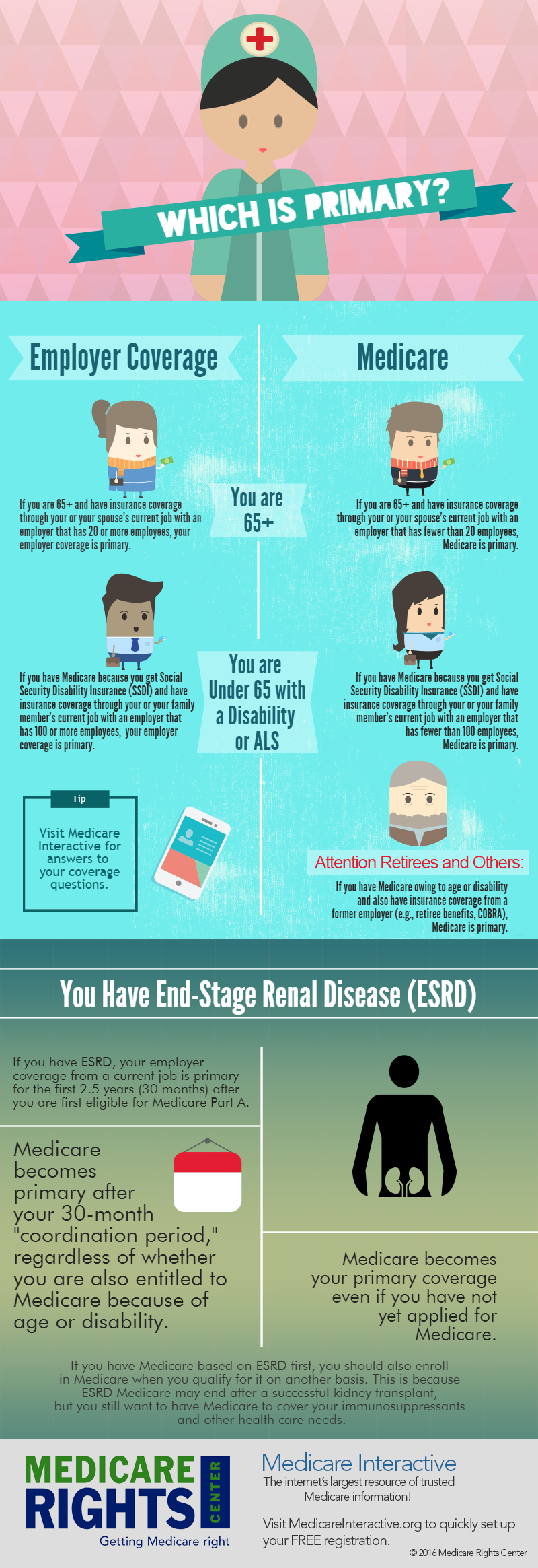 Check out this handy infographic explaining when employer coverage is primary and when Medicare is primary.
