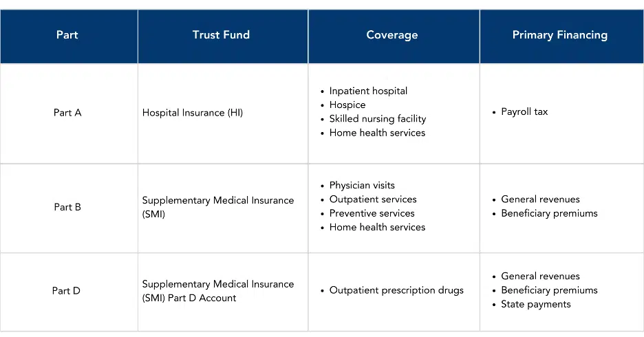 Any discussion of Medicare sustainability must begin with its financing. And understanding its financing means we need to explore the program’s structure. Original Medicare is split into three major parts.[ii]
