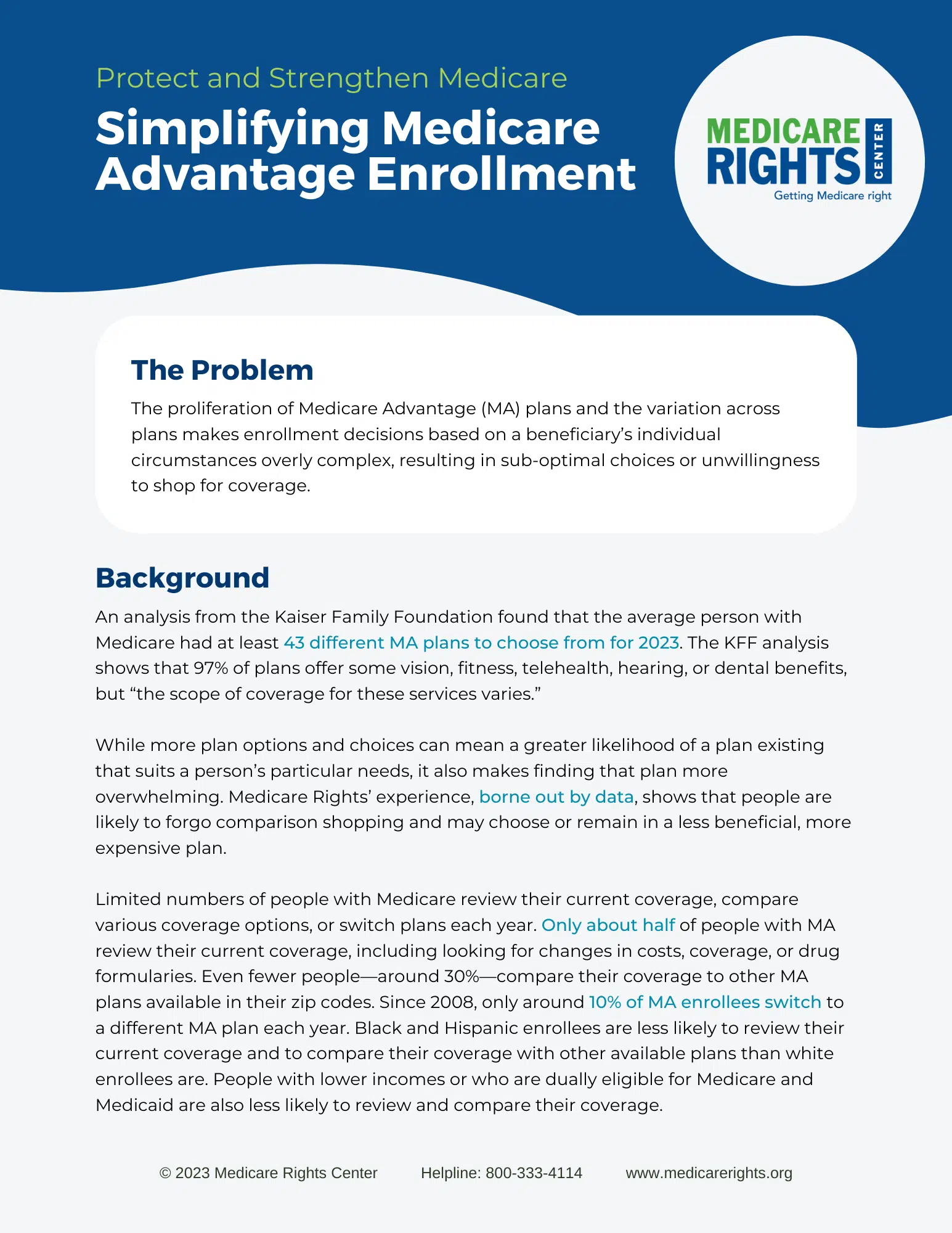 The proliferation of Medicare Advantage (MA) plans and the variation across plans makes enrollment decisions based on a beneficiary’s individual circumstances overly complex, resulting in sub-optimal choices or unwillingness to shop for coverage.